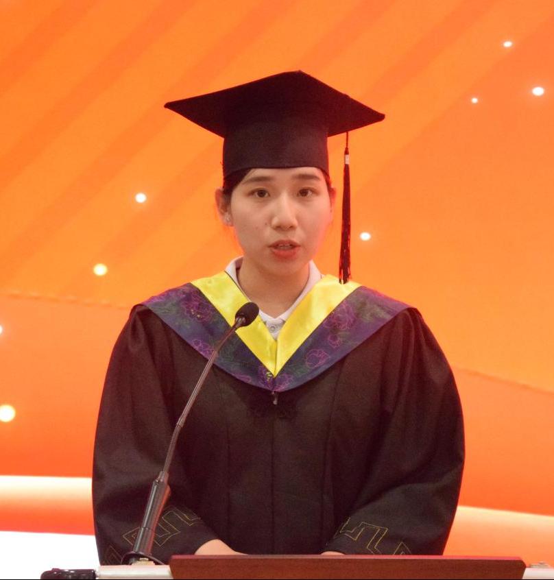 典礼上本科生毕业生代表史昕禾发言,她感恩母校为同学们铺就追逐梦想的道路,并表示将铭记惟真求新的校训,以求知若渴的热忱投身未来工作。研究生毕业生代表段书麟发言,他感谢母校和72886必赢的培养,立志学以致用,为国家和社会发展贡献力量。