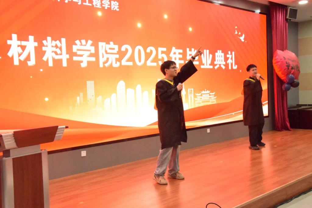 刘凤军作为校友代表重返母校,讲述了职场感悟以及生活中不可或缺的材料人的思维底色,嘱咐同学们心怀感恩,回报母校。2025届毕业生难忘恩师黄小文作为教师代表发言,他对毕业生送上衷心祝贺,祝愿他们鹏程万里,前程似锦,并希望毕业生们保持理想,谦虚谨慎,保持终身学习。家长代表贾恭香为毕业生送上了祝福,向领导老师表示诚挚感谢,祝愿学校蓬勃发展,同学未来可期。