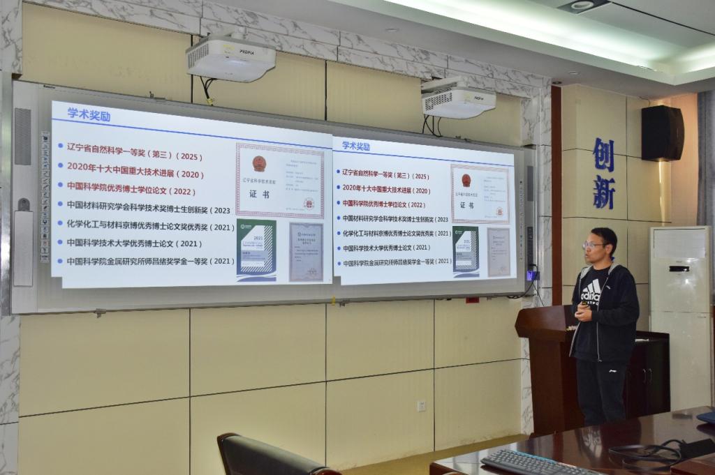 论坛上,6位优秀青年学者带来了精彩的学术汇报。加拿大女王大学的高国芮作题为《High-rate,Selective and Stable Electrochemical CO₂Reduction in Aqueous Systems》的报告;香港理工大学的乔羚和高振国分别聚焦“数据驱动多主元合金设计与变形机理研究”“电磁波吸收材料的多物理场耦合及无线能量交互”展开交流;香港科技大学博士钱希堂分享了“新型固态离子导体的设计、制备与应用”方面的研究;清华大学的程传钦学者围绕“面向高效稳定蓝光 OLED 的材料设计与显示应用研究” 进行了深入探讨;美国德克萨斯农工大学的李宏伟学者则介绍了 “聚电解质材料的特性及应用”。各位学者的报告内容丰富、见解独到,展现了材料科学领域的前沿动态与创新成果,引发了现场师生的热烈讨论。