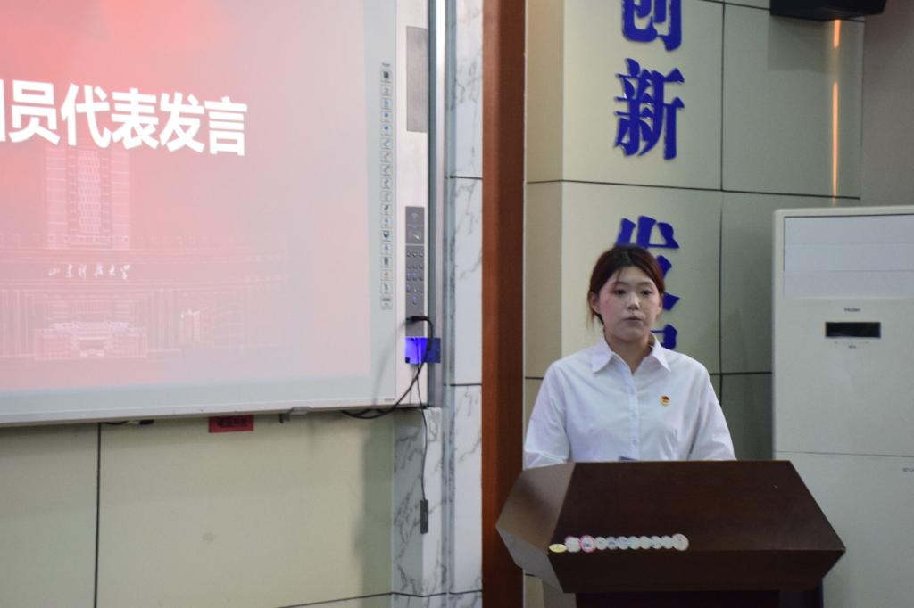 党委副书记兼副院长李建楠发表讲话,向新团员表示祝贺,并结合材料学科发展与国家战略需求提出期望:希望团员青年坚定理想信念,将个人成长与学科、国家需求结合,在科研攻坚与创新中争当表率,以实际行动践行使命。