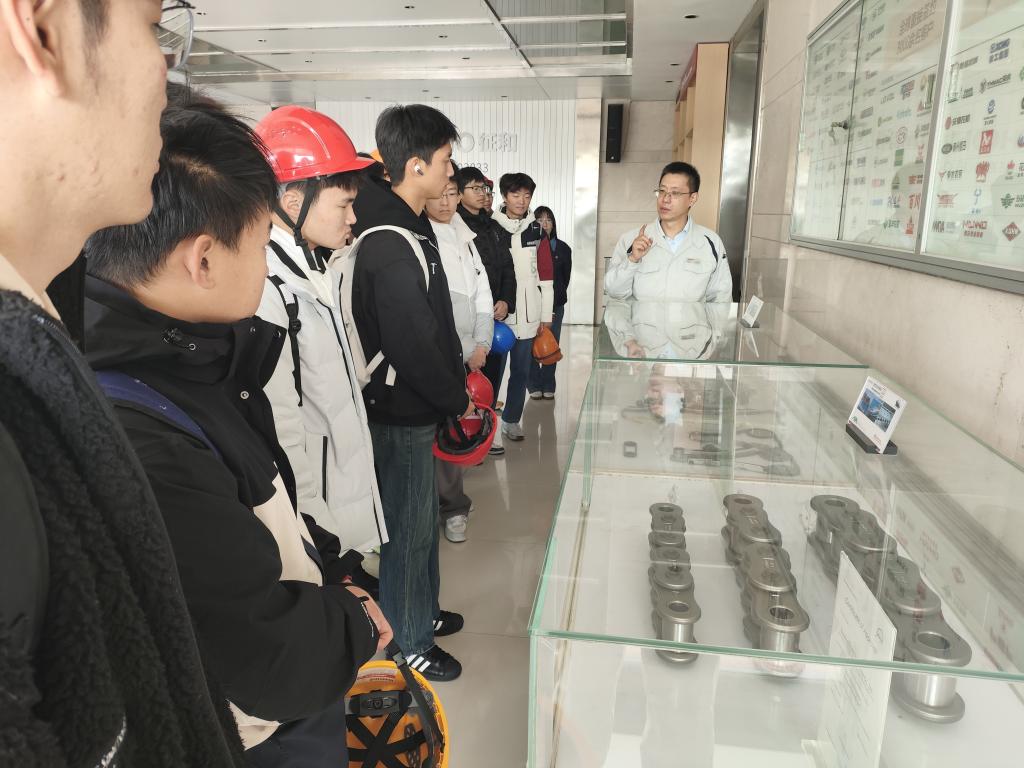 在青岛征和工业股份有限公司,公司副总裁兼山东科技大学产业教授刘毅及公司骨干带领同学们首先走进企业展厅,系统了解征和34年来专注“一条链”——从摩托车链条到汽车正时系统、从工业传动到高速高铁应用的迭代升级,现场触摸“中国单项冠军产品”的精密质感。随后,大家分批穿越智能化生产车间,近距离观察链板冲压、热处理、激光焊接、在线检测等关键工序。全自动物流小车穿梭其间,MES大屏实时跳动,让课本上的“智能制造”“精益生产”瞬间鲜活。